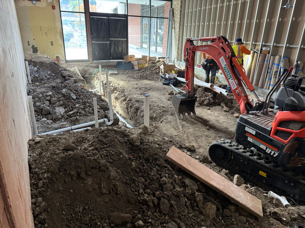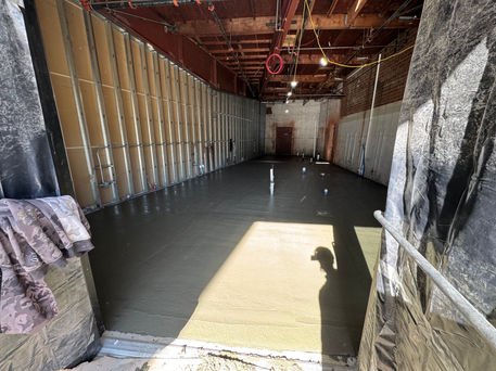 Half of the space required a new slab to be poured, the other half of the space required saw-cut, demo and pour back of plumbing trenches.